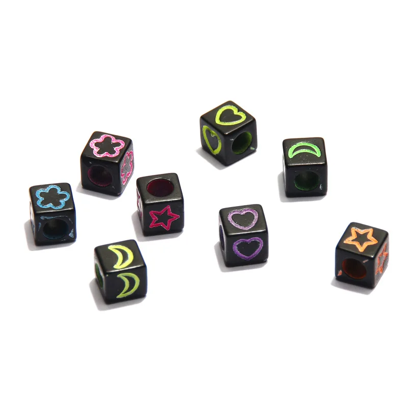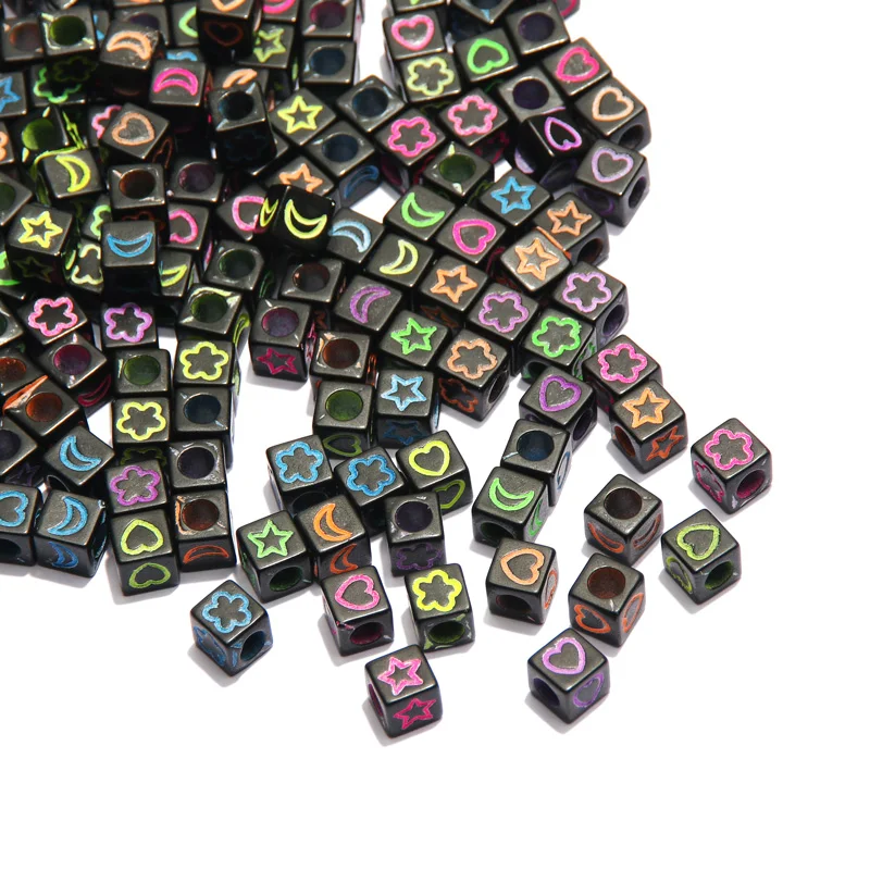 Акриловые бусины 6*6 мм, Смешанные черные звезды, луна, цветок, сердце, квадратные буквы, кубики, разделительные бусины для изготовления ювелирных изделий, браслетов, ожерелий своими руками