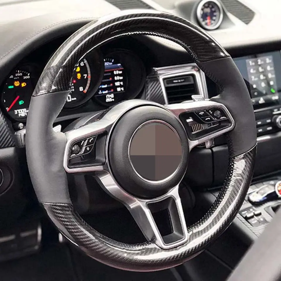 Ручная сшивка мягкий черный углеродное волокно перчатки из натуральной кожи Чехлы рулевого колеса автомобиля для Porsche Macan Boxter Cayenne 2015-2016