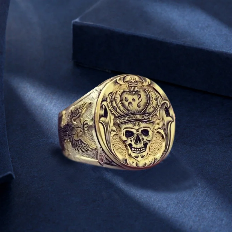 Кольцо мужское, в стиле панк, с резным золотым черепом, морским монстром, Размер 7-14
