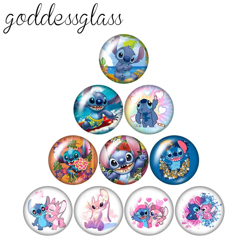 Disney милый Стич Ангел мультфильм 10 шт. 12 мм18 мм20 мм25 мм круглый фото стекло кабошон плоская задняя часть ожерелья Фурнитура