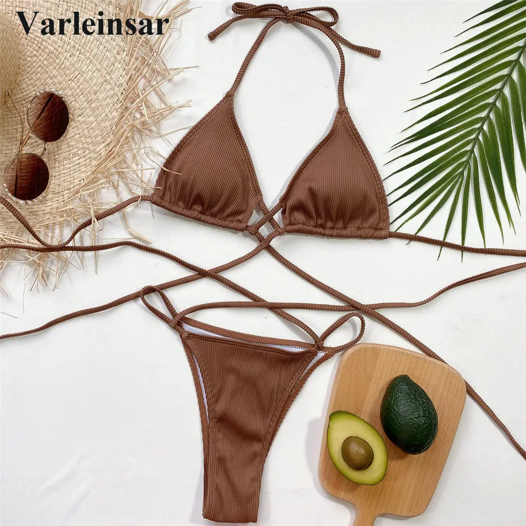 Сексуальный ребристый Бразильский бикини 2022 купальник женский ком...