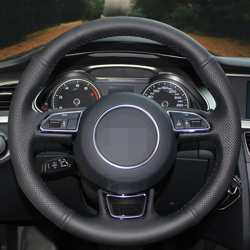 Чехлы рулевого колеса автомобиля черная натуральная кожа для Audi A...