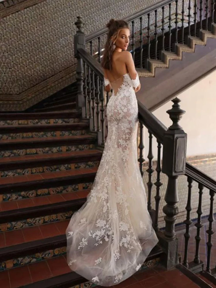 Женское свадебное платье с юбкой-годе, кружевное платье с открытой ...