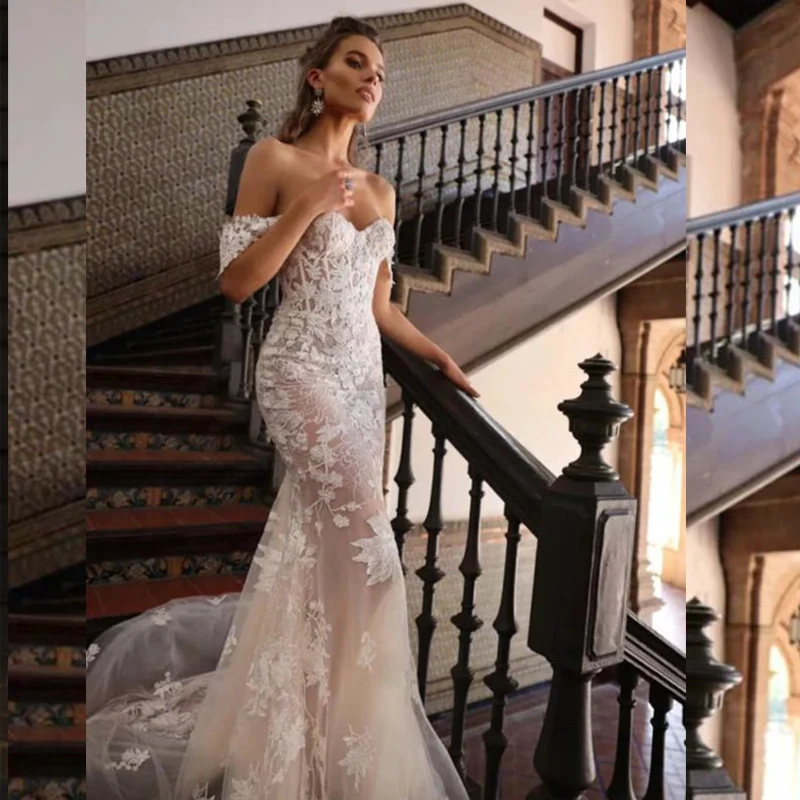 Свадебные платья с открытыми плечами в стиле бохо, милое кружевное ...