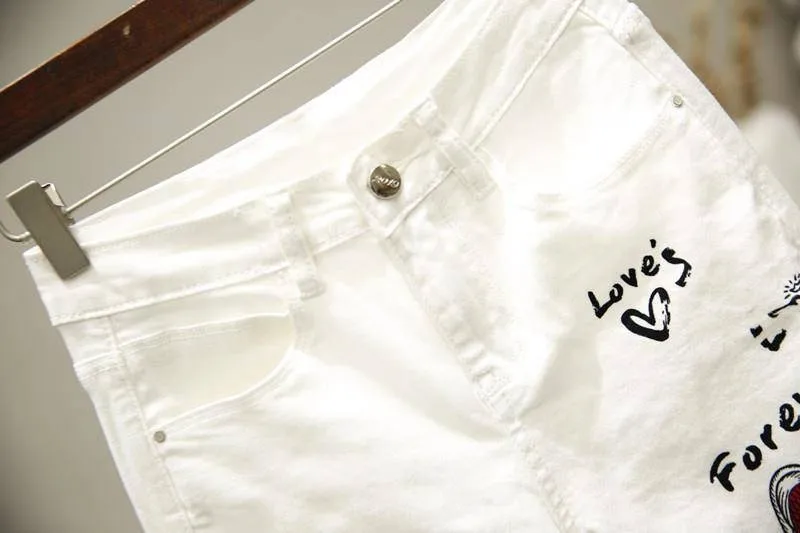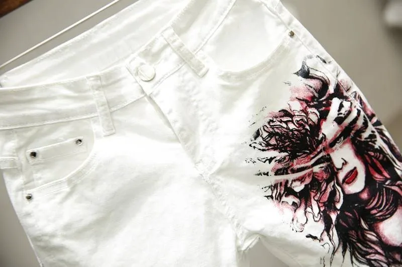 Женские белые обтягивающие джинсы, зауженные джинсы-карандаш с принтом в виде граффити, осень, размера плюс