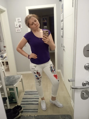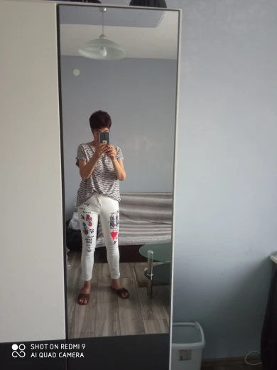5.08 заказ прибыл 24.05 на пост Пятёрочки с другими заказами с Али.29 размер мне маловат.Сама промахнулась,ориентировалась по предыдущим отзывам.Штанишки конечно тянуться,но сборят и швы еле еле дышат)))Качество хорошее,дышат,молочного цвета,рисунок на ткани-не апликация.Но на рост 162 см,попа 94 см ,талия 72 см советую брать размер 30-31.
