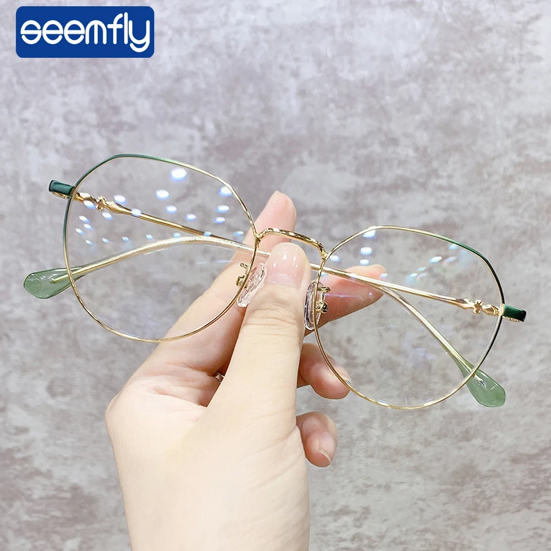 Очки seemfly в металлической оправе для мужчин и женщин, круглые нестандартные очки для близорукости с защитой от синего излучения, в стиле унисекс, в зеленой и оранжевой оправе