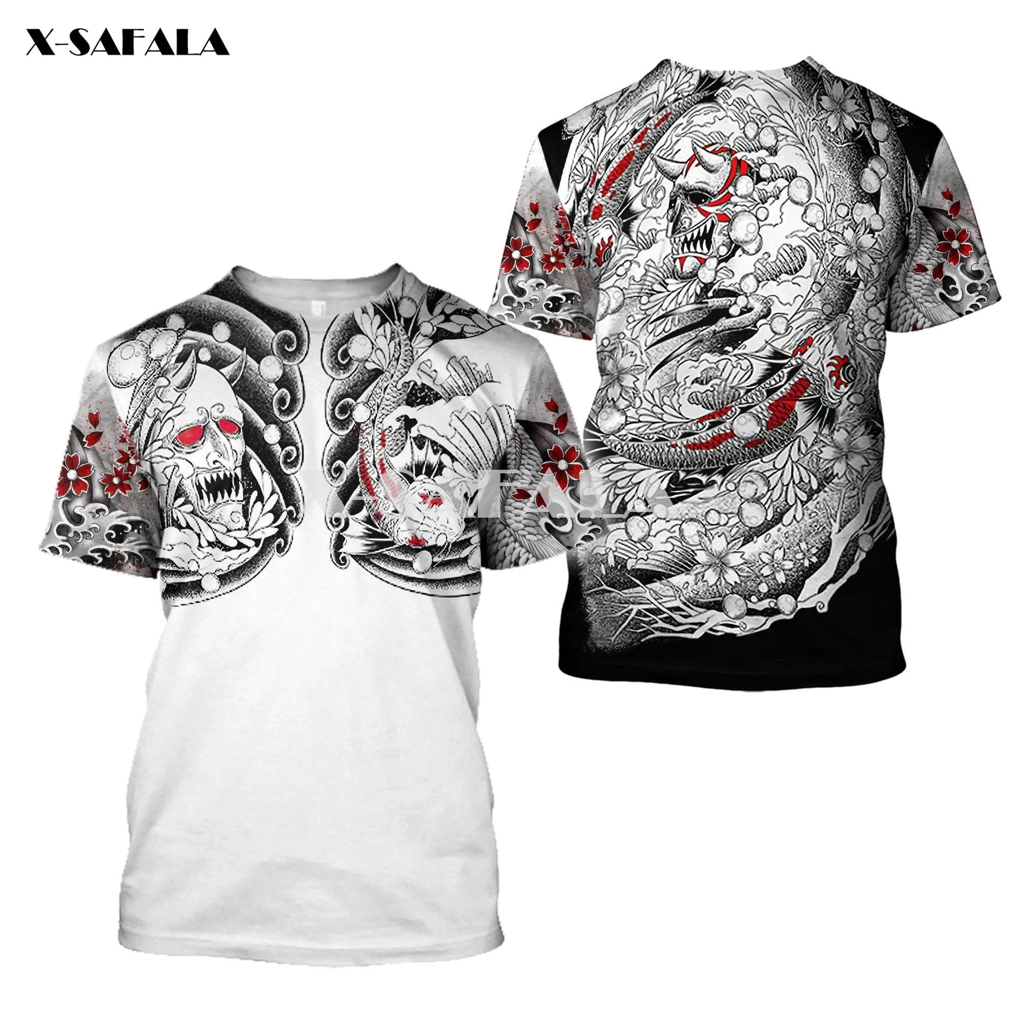 Мужская армированная маска самурая с татуировкой, футболки с 3D-принтом, летняя модная футболка с коротким рукавом, в стиле Харадзюку, панк, для женщинунисекс-7