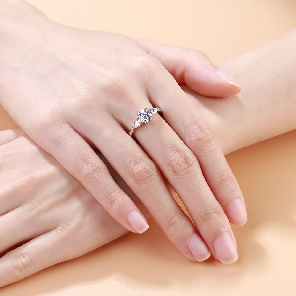 Ваше сердце S925 обручальное кольцо из стерлингового серебра 6,5 мм синтетический бриллиант Обручение кольцо Круглый кольцо для Для женщин