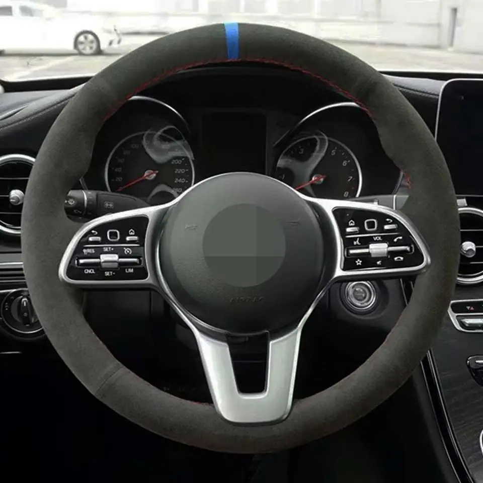 Черная замша кожаный чехол рулевого колеса автомобиля для Mercedes ...