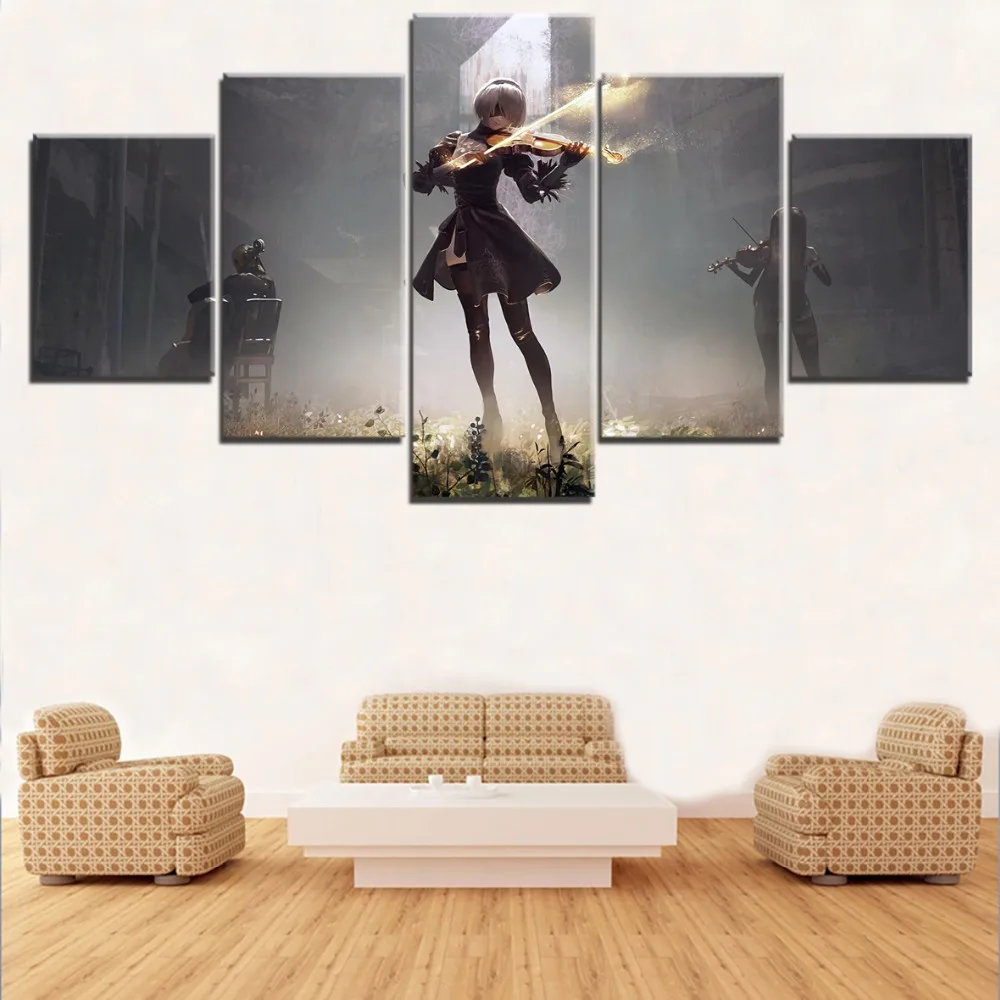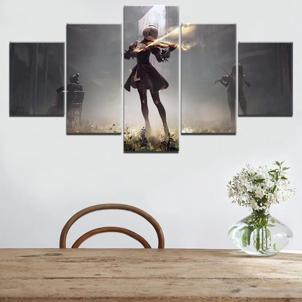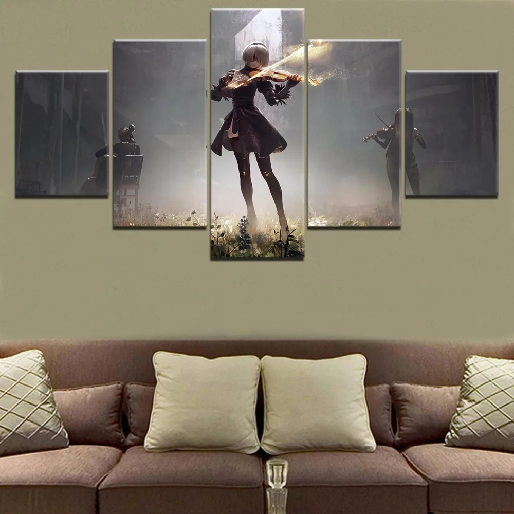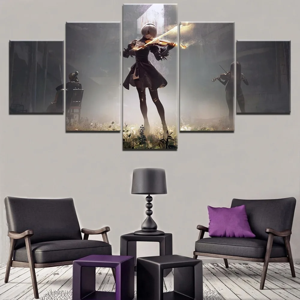Плакаты NieR Automata 2B для игры на скрипке, настенные картины на холсте, декоративные картины для украшения дома, картины, 5 шт.