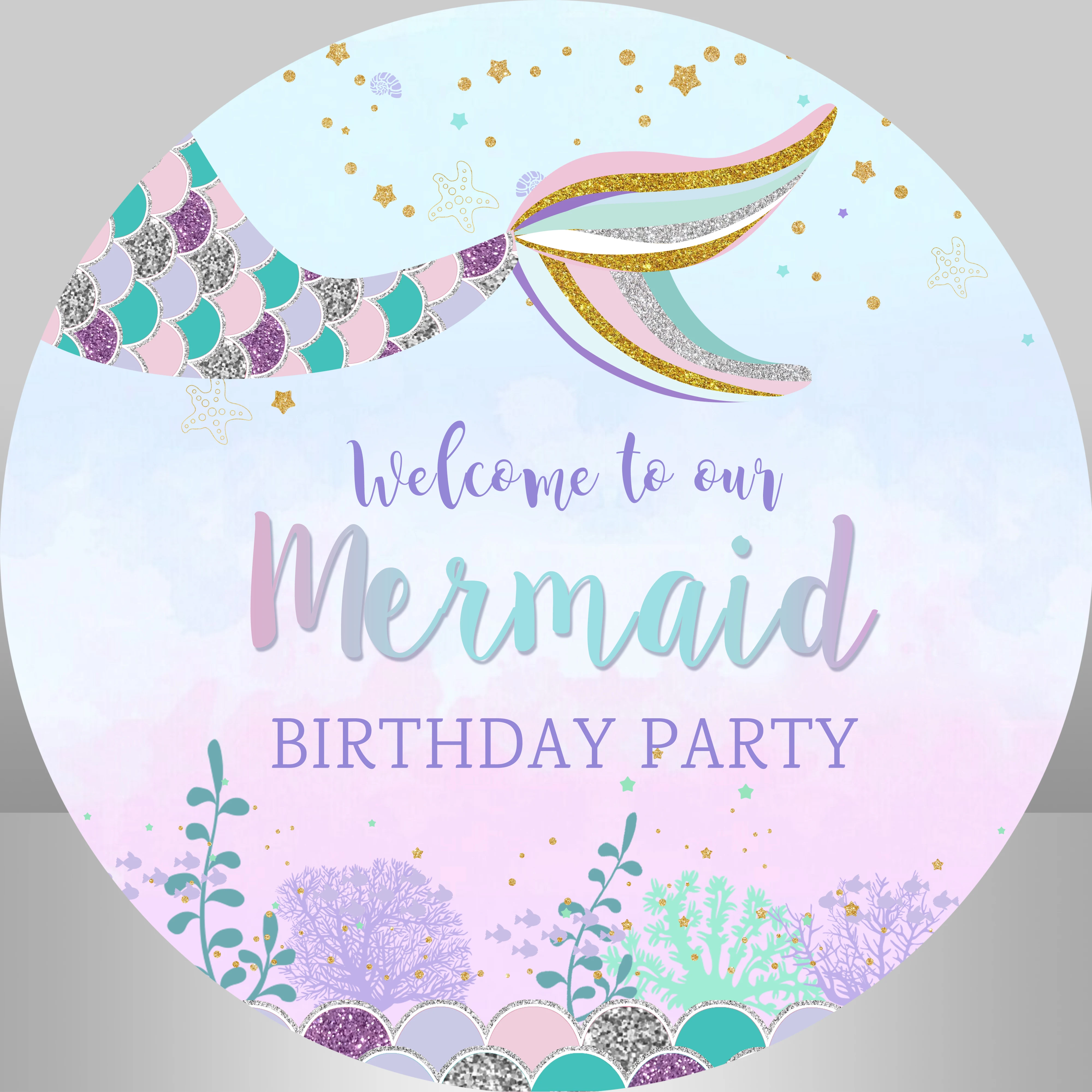 Подводная Русалка круглый фон детский душ Девочка День рождения декор стол цилиндрическая крышка Фотостудия