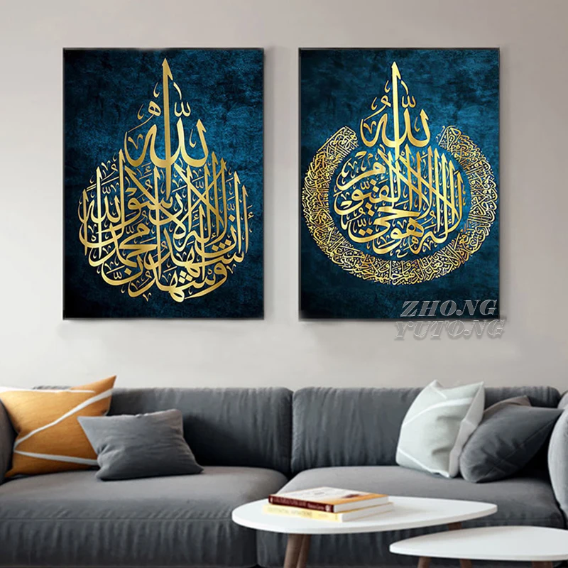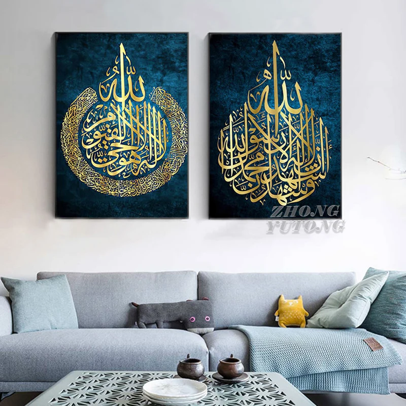 Плакаты и принты с буквами Корана, настенная живопись на холсте, му...