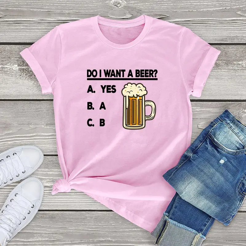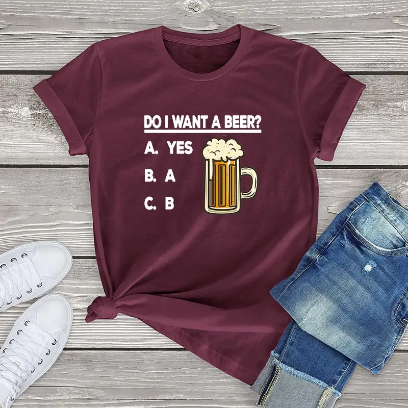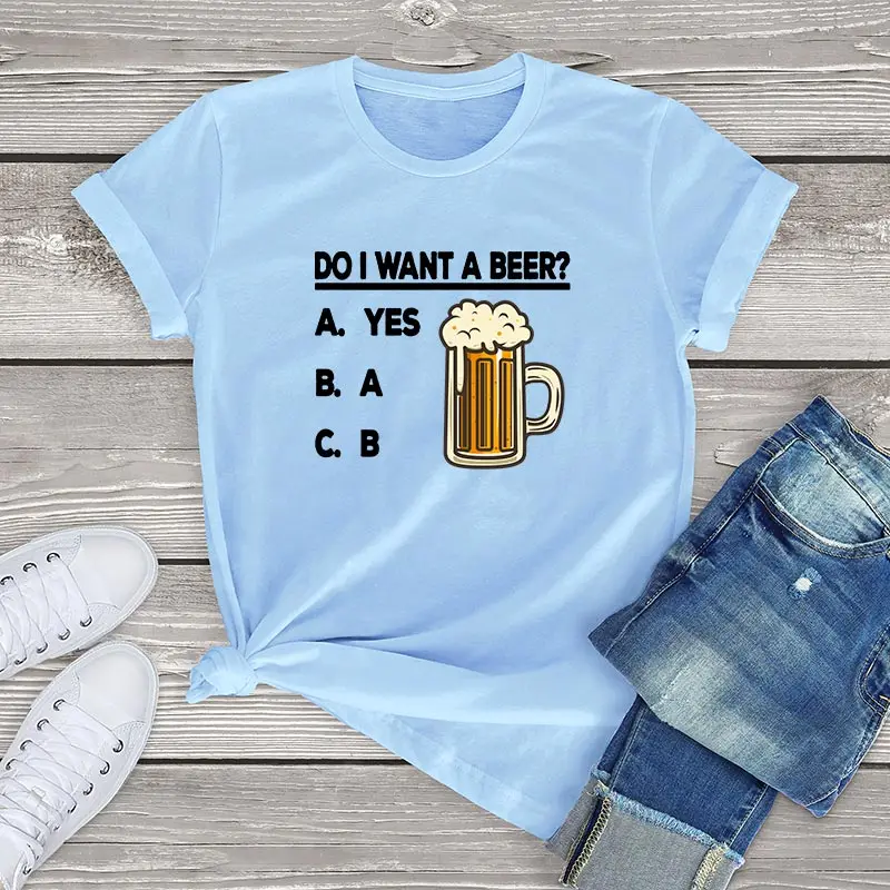 Милая футболка из 100% хлопка с пивом, женская одежда, забавная футболка унисекс с надписью «Do I Want A Beer», мужские и женские хлопковые футболки, модные летние топы для девочек