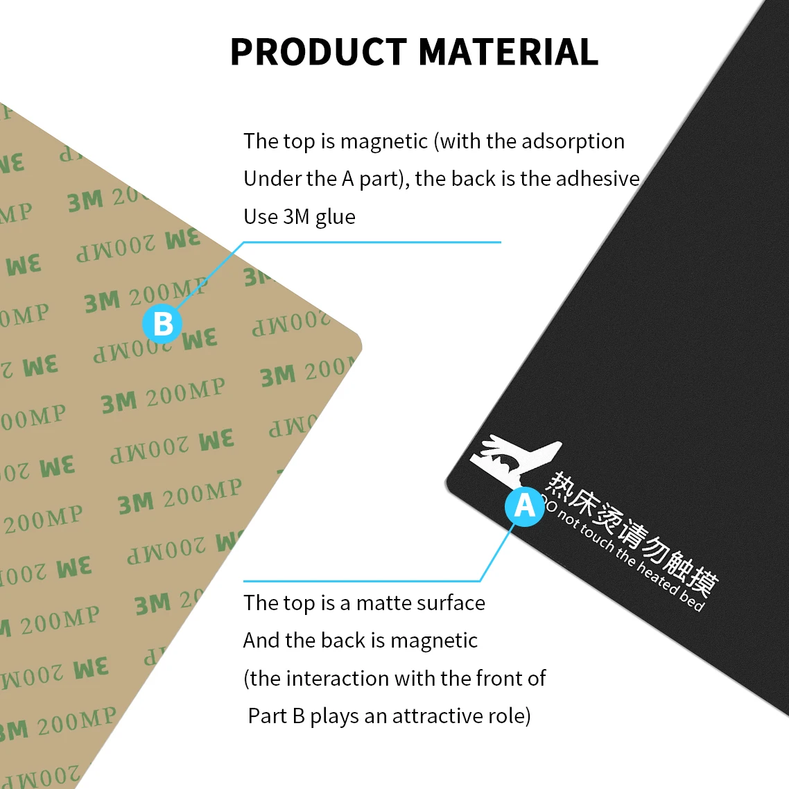 3D-принтеры Запчасти Магнитный печати кровать Tape150200214220235310 мм квадратный очаг принт Стикеры сборка Flex поверхности Ender-3CR-10