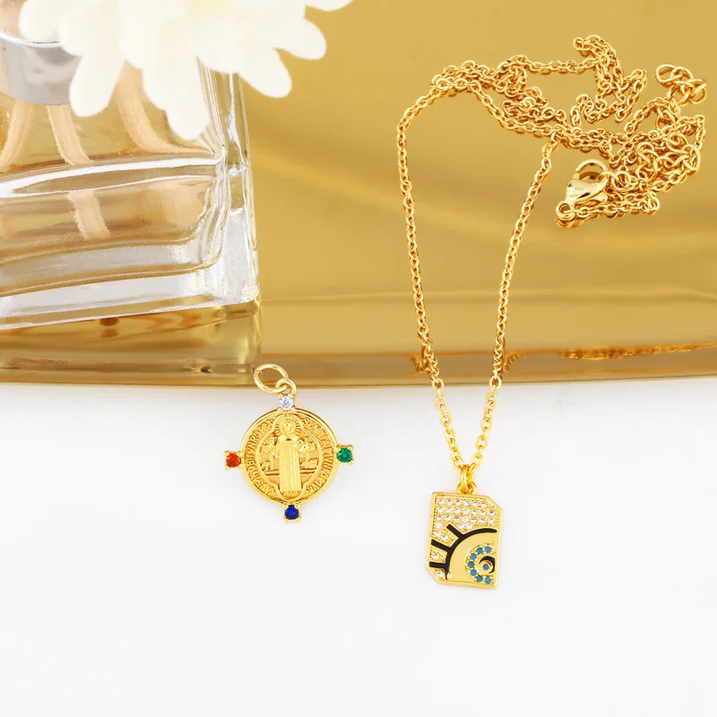 Ожерелье FLOLA с позолоченными бусинами Девы Марии для женщин, ожерелье с кулоном сглаза с фианитами, защитные ювелирные изделия, губная Мария nkeu63