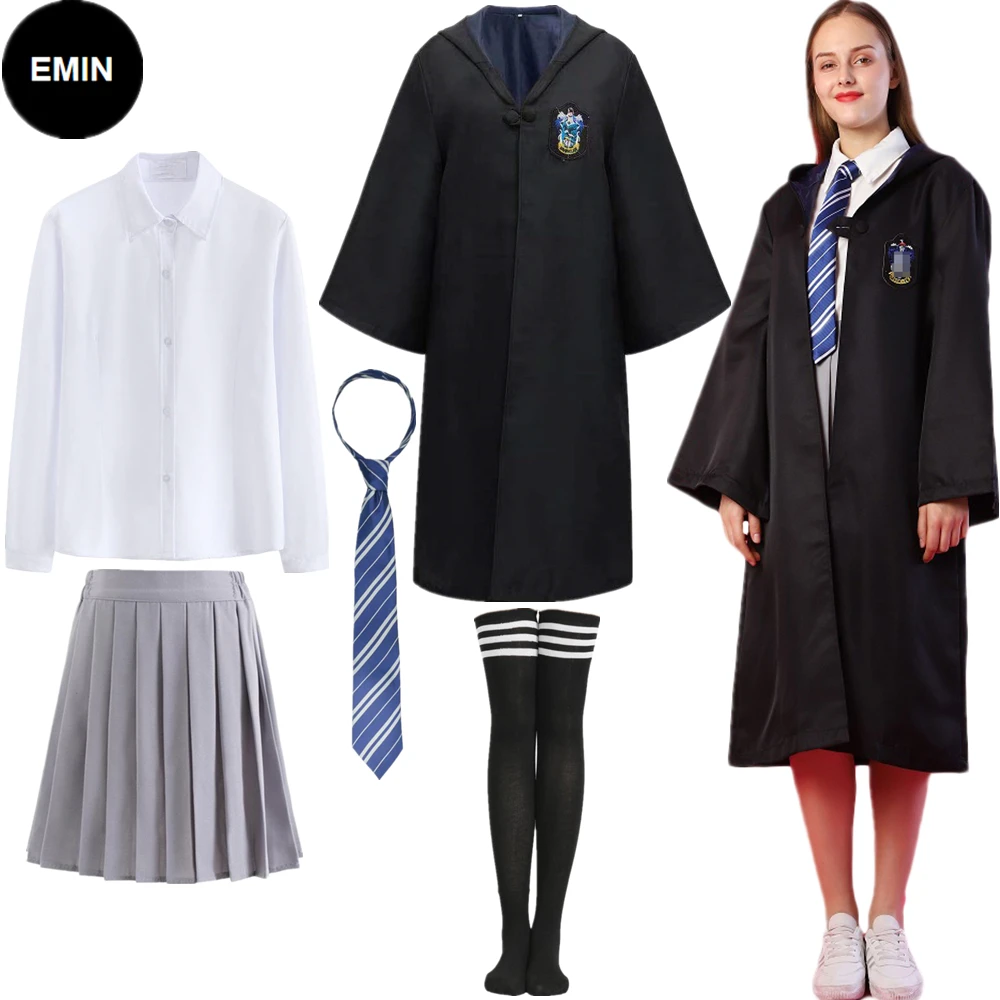 Магический плащ для косплея для взрослых женщин, костюм, школьная форма, рубашка, юбка, носок, галстук, платье, Хэллоуин, комплект для рождественской вечеринки