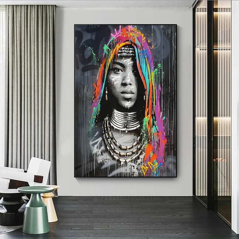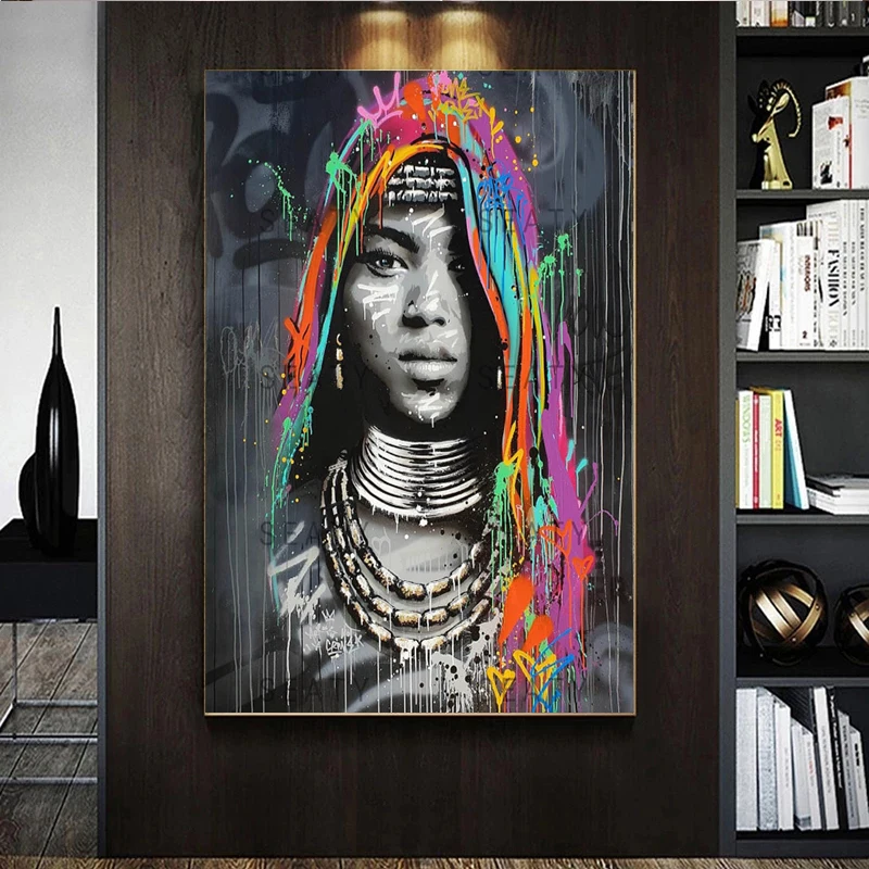 Африканская черная женщина граффити художественные плакаты и принты абстрактная африканская девушка холст настенные картины искусство, картинки, на стену Декор