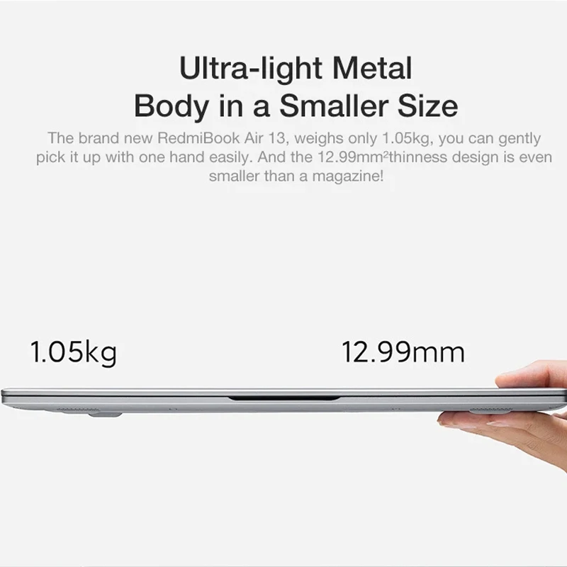 Новое поколение RedmiBook Air 13, который является как светильник как 1,05 кг и очень тонкие, 12,99 мм, меньше, чем журнал и может быть подобраны для девочек одной рукой. Фюзеляж принимает закругленный стальной Пескоструйный процесс, с простым дизайном и тонкой текстурой.2560*1600 высокое разрешение100% sRGB высокая цветовая гамма (типичное значение)Поддержка затемнения постоянного тока, удобная и приятная для глаз300 нит высокая яркость, 178 ° Широкий угол обзора (типичное значение)