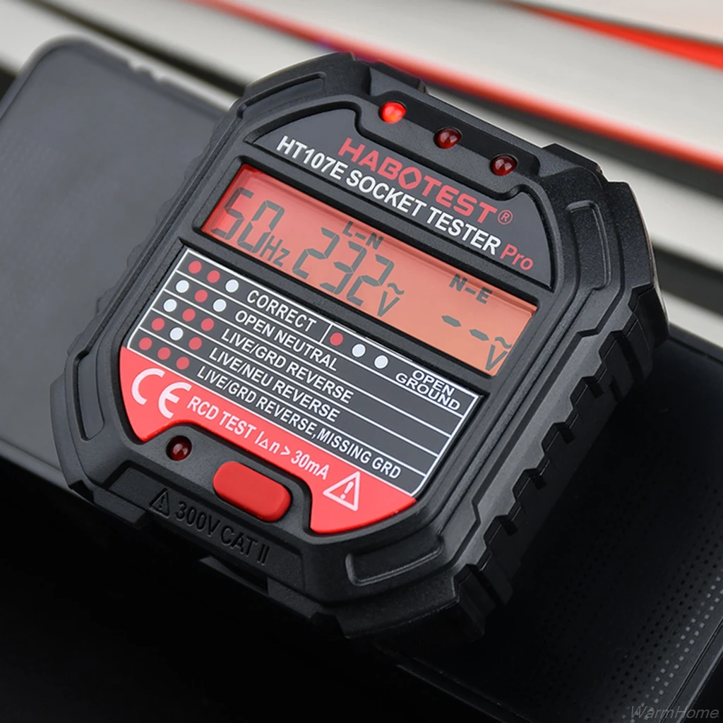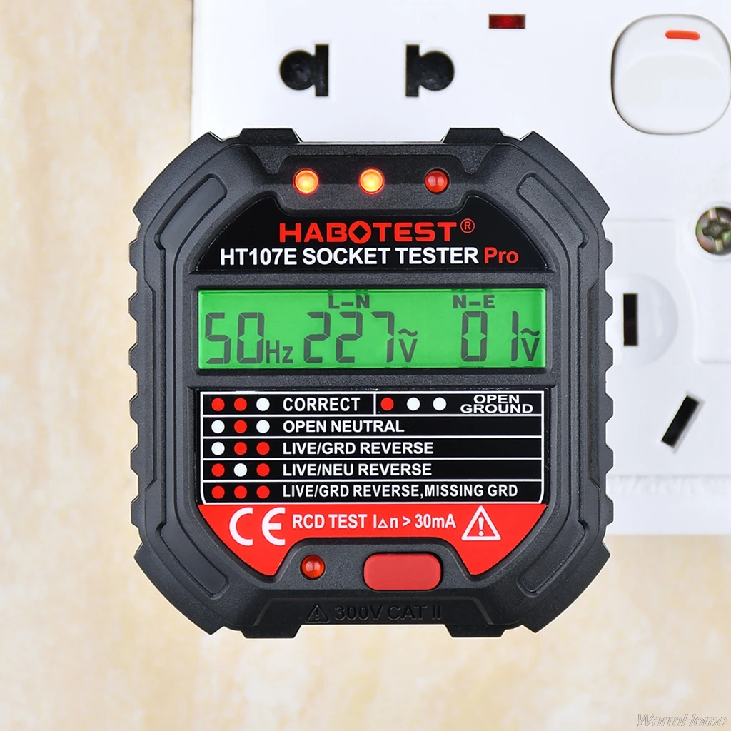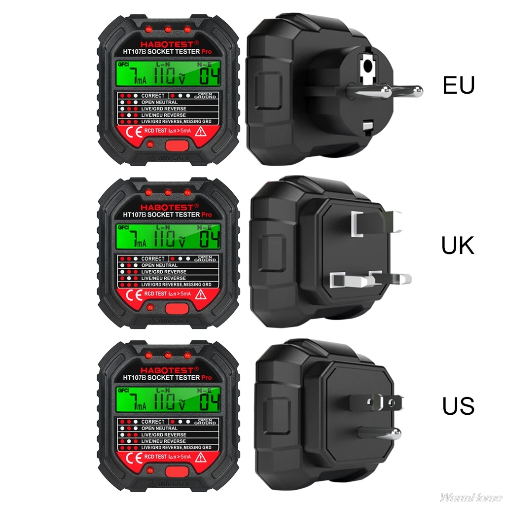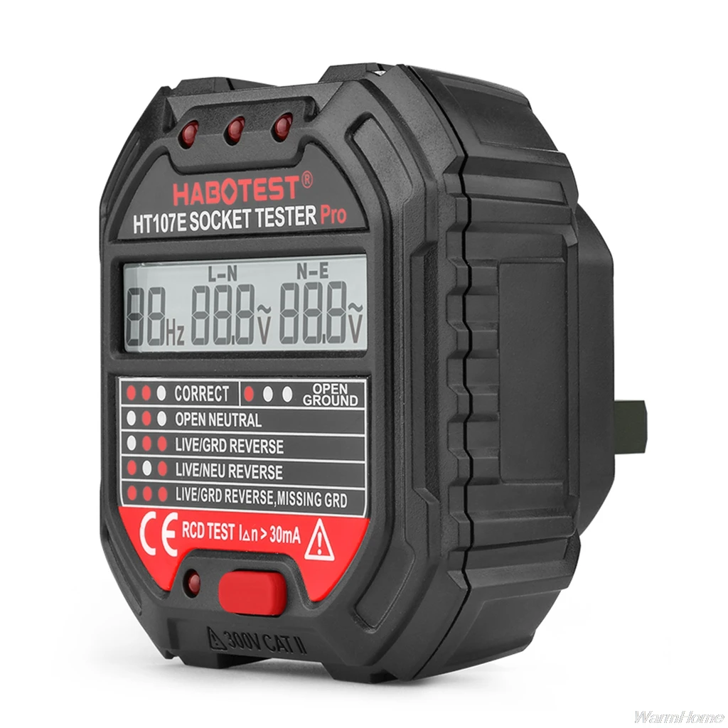 Тестер для розеток HT107, измеритель напряжения, штепсельная вилка ЕвропейскогоБританскогоамериканского стандарта, с ЖК-дисплеем, A07 21