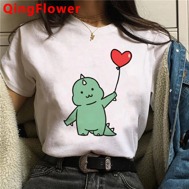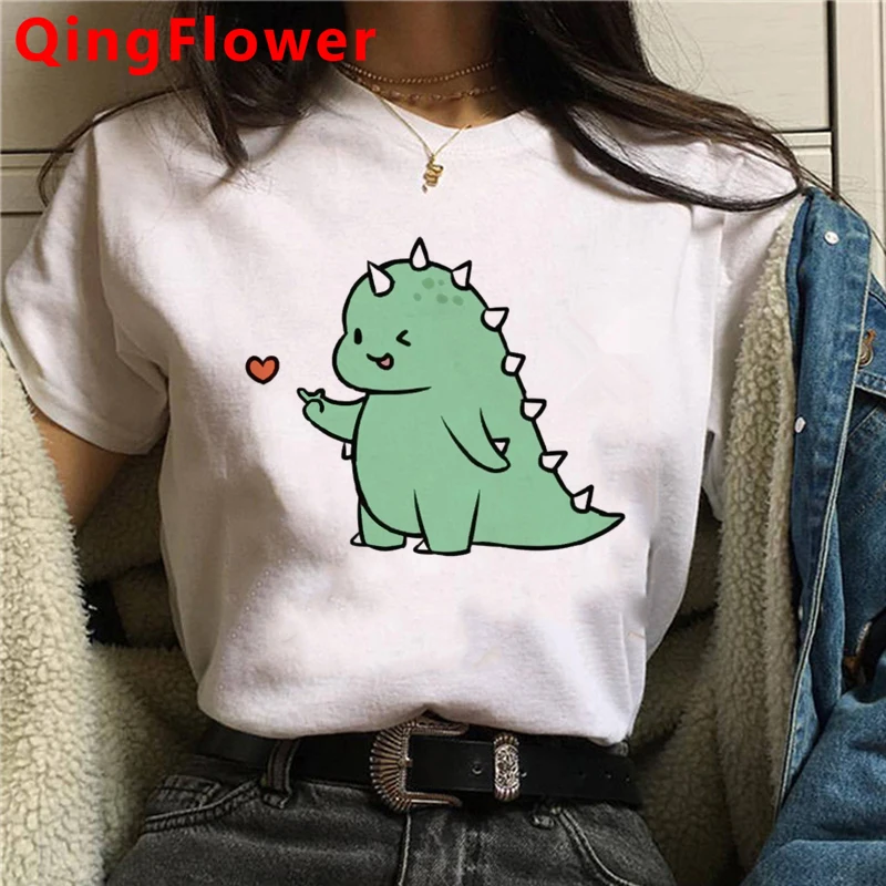 Футболка женская в стиле Харадзюку, милая забавная мультяшная парная футболка с динозавром, корейский Графический Топ, уличная одежда