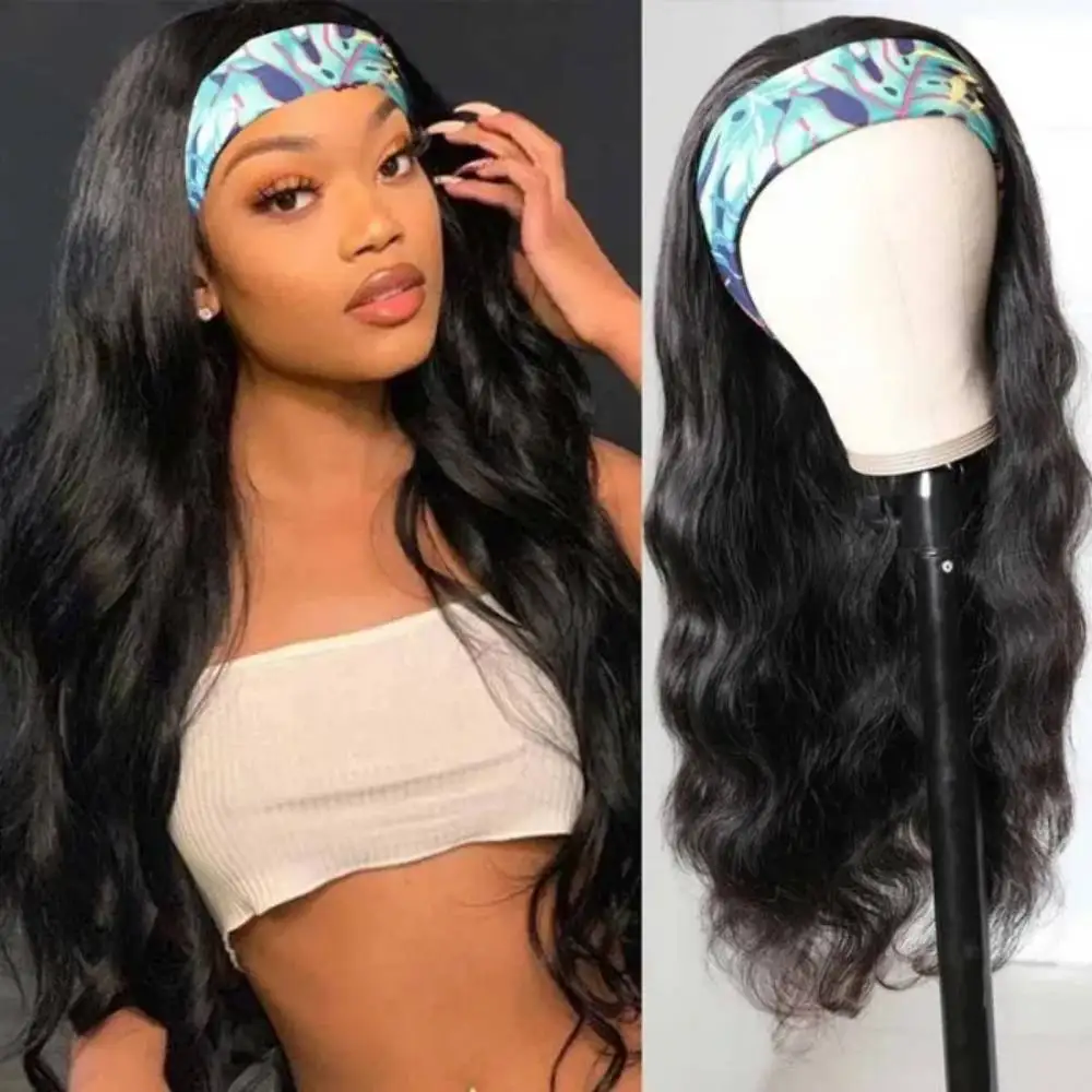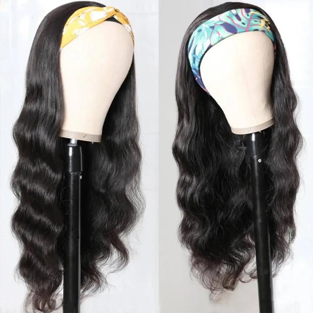 Парик с головной повязкой объемная волна человеческих волос парики для чернокожих Для женщин бесклеевой Ice Silk (искусственное волокно парик с головной повязкой с малайзийские волосы Remy человеческие волосы прямые волосы