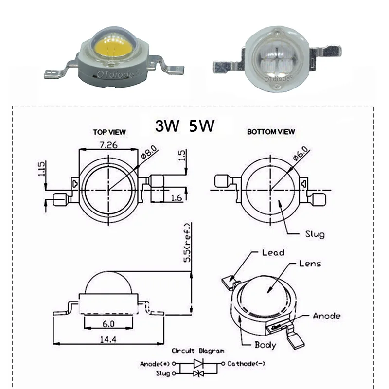 Номер товара:Светодиоды высокой мощности 1 Вт 3 Вт 5 Вт
