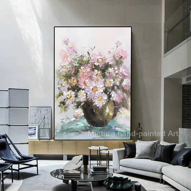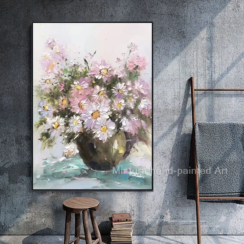 Картина маслом на холсте, ручная работа, нож, цветок, картина маслом, Настенная картина, украшение для дома, для гостиной, большой
