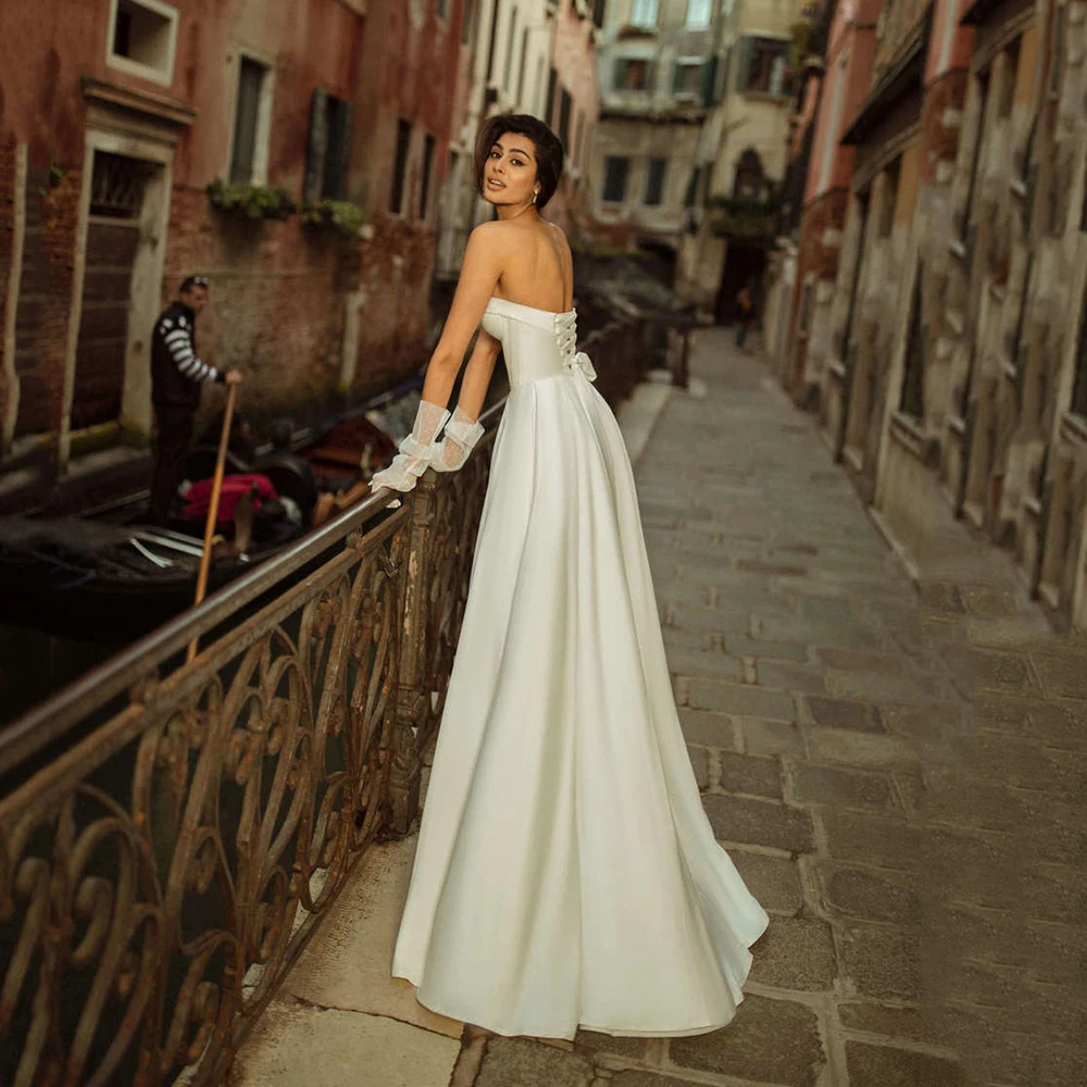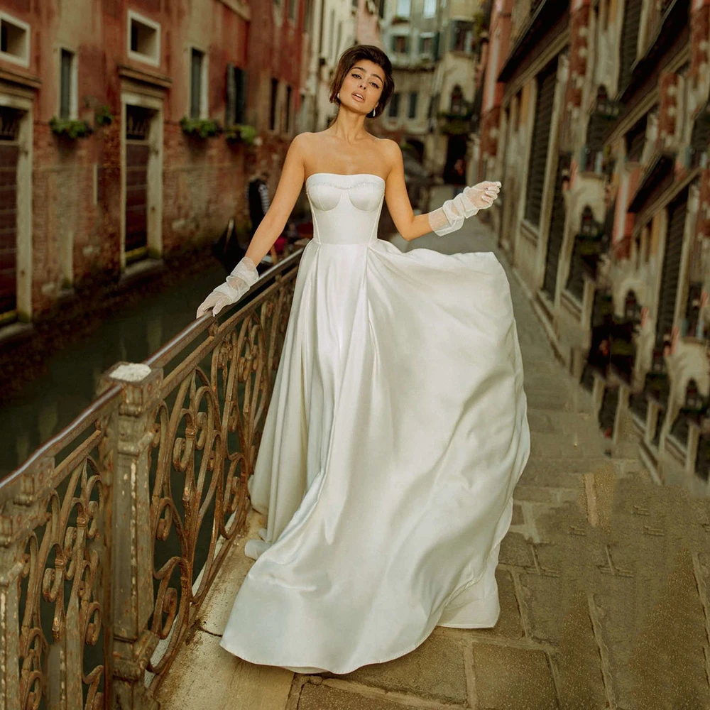UZN свадебное платье с корсетом А-силуэта без бретелек свадебное платье дешевые атласные свадебные платья
