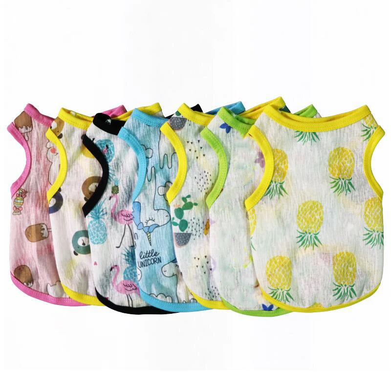 Хлопковая летняя Солнцезащитная жилетка для питомцев, крутая воздухопроницаемая жилетка для собак, Милая футболка с принтом щенка для маленьких и средних собак