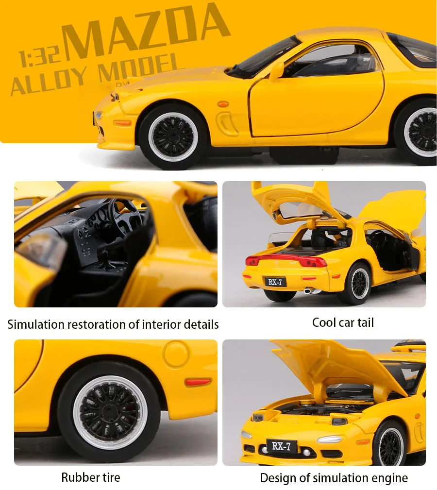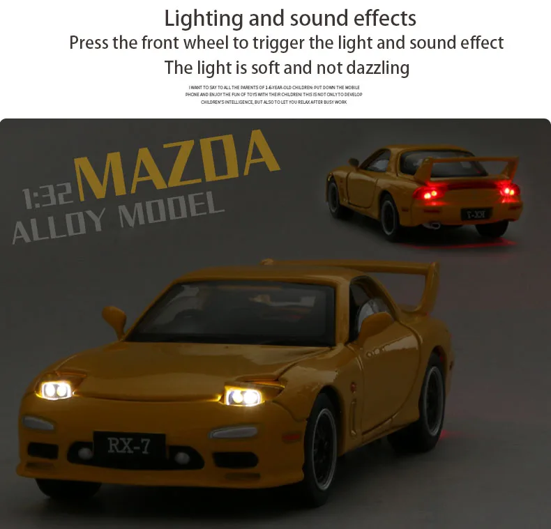 1:32 Mazda Rx7 модель автомобиля брелок для автомобильных ключей, литой игрушечный автомобиль модель звук светильник с инерционным механизмом для домашних животных Коллекция Подарки для детей