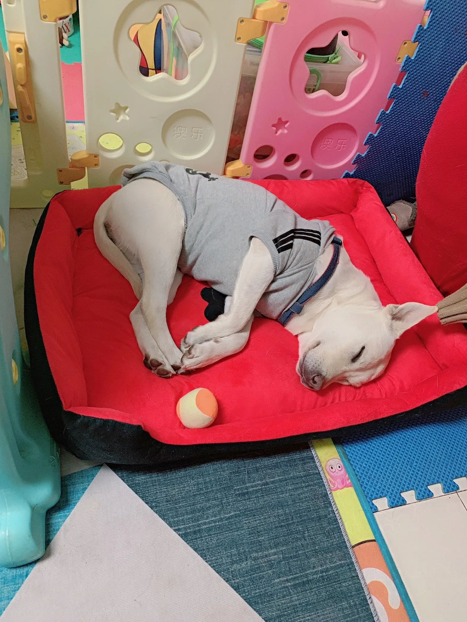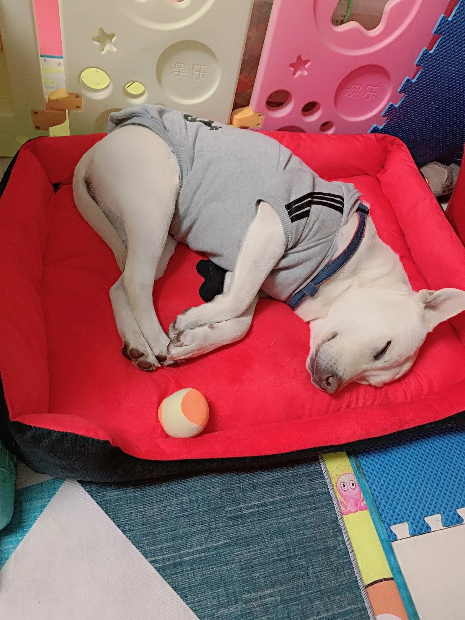 Моя собака любит свою кровать, иногда она лизывает свою подушку, и ей нравится растягиваться во всех направлениях. Она будет лежать в своей кровати, но она не позволит кому-либо лежать на ней, включая меня.