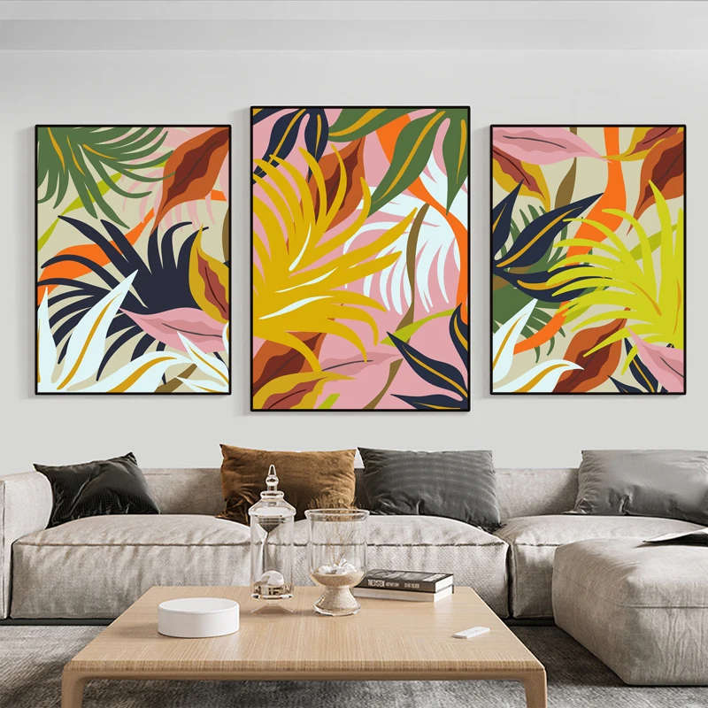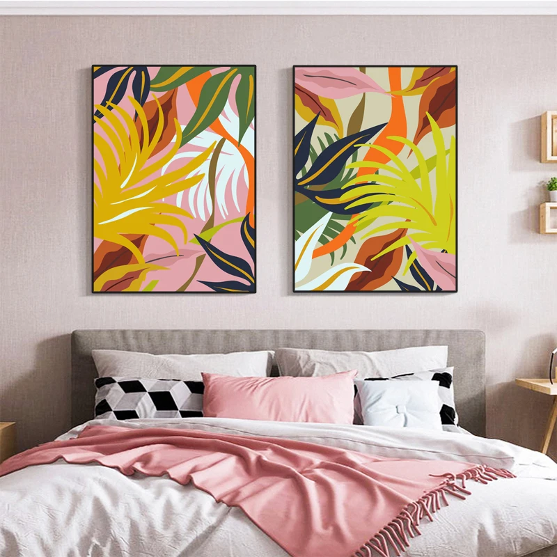 Настенная Картина на холсте с абстрактными цветами и листьями, картина, скандинавский декор, плакат для гостиной, дома, отеля, декоративные картины