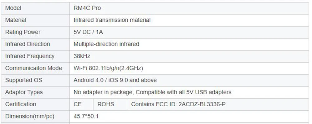RM Pro-это настоящий универсальный пульт дистанционного управления со следующими функциями:1. Поддержка всех ИК-устройств, таких как ТВ, кондиционеры, DVD и т. Д.2. Поддержка частот 433 МГц и 315 мгц.3. Поддержка Wi-Fi 2,4 ГГц b/g/n4. Поддержка приложений для Android и IOS для управления телевизором с помощью смартфона через Интернет5. Вы Можете заранее установить время загрузки телевизора/кондиционера/DVD6. Поддержка автоматического режима, автоматического дома и в автоматическом режиме7 Простая конфигурация: одноэтапное подключение к вашему дому или офису Wi-Fi, шлюз не требуется8 профилей: Превратите ваш смартфон на iOS или Android в универсальный пульт дистанционного управления9 умное управление: с помощью приложения Broadlink вы можете управлять своими устройствами в любом месте и в любое время10. Расписание: предварительно Настройте собственные профили и автоматически работайте в установленное время