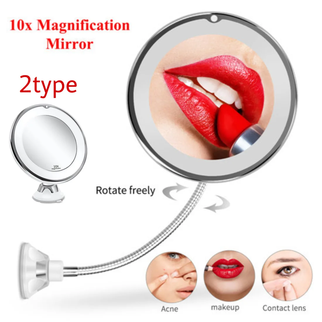 Зеркало для макияжа со светодиодсветодиодный подсветильник кой, с 10-кратным увеличением