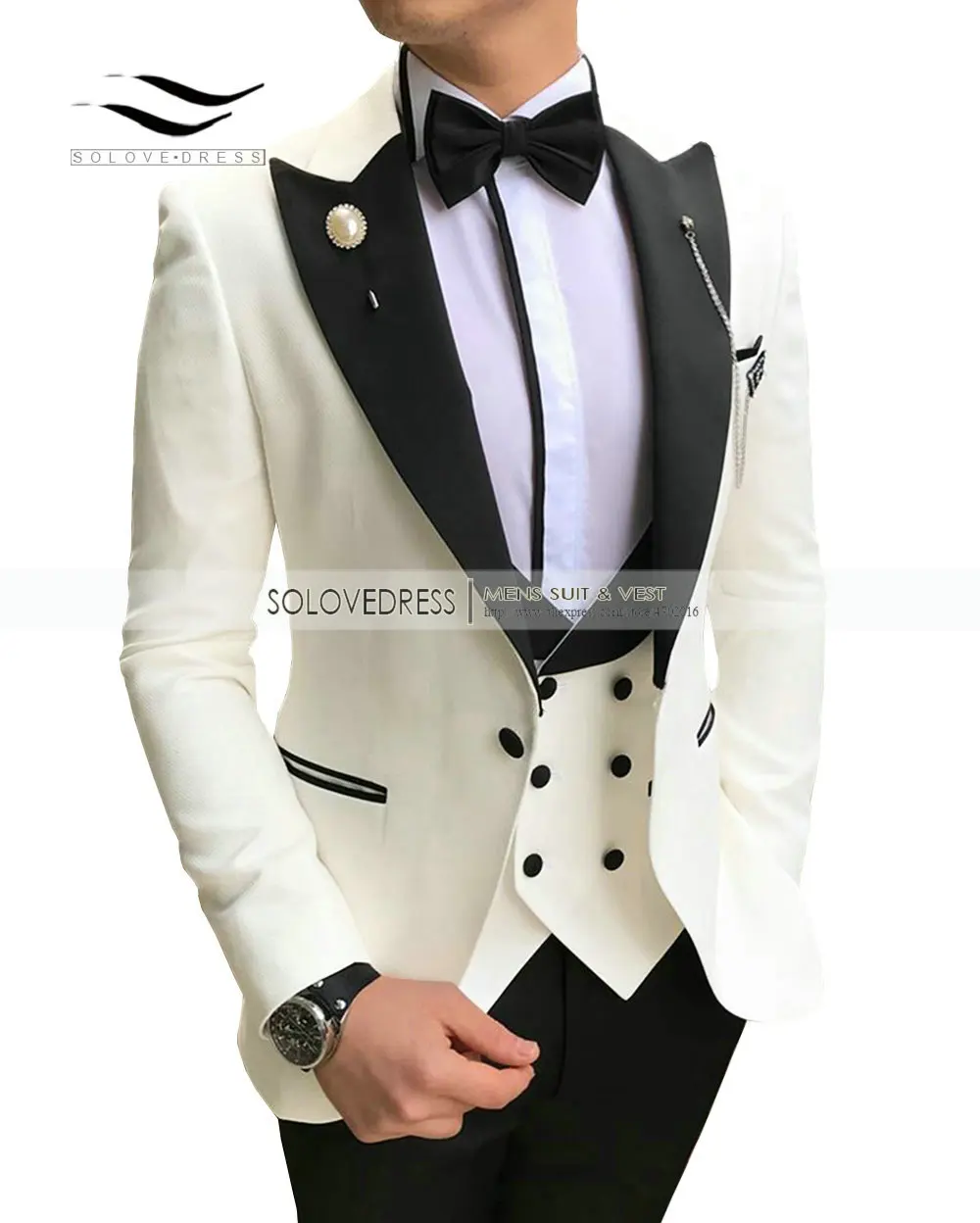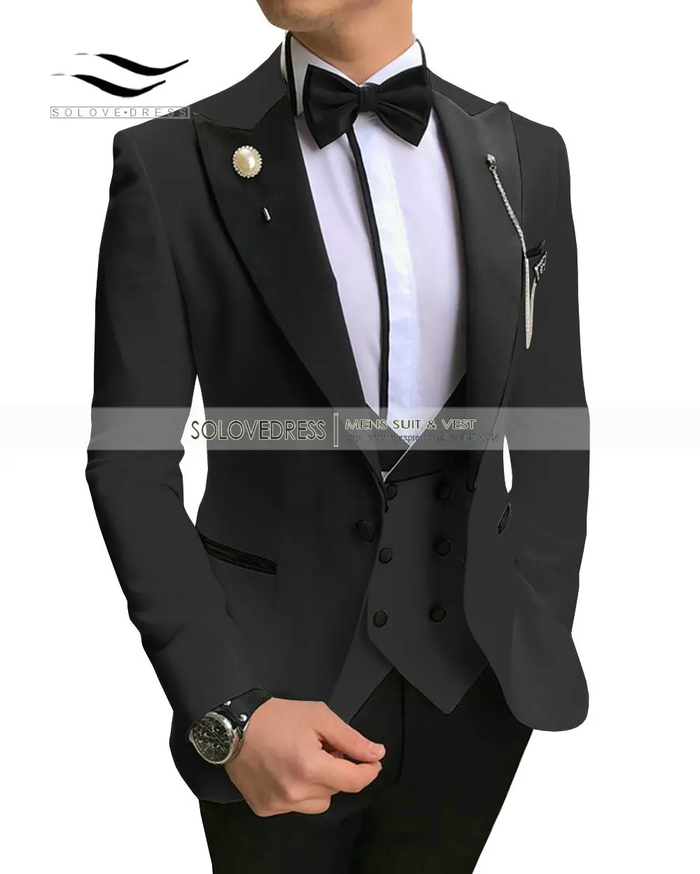 Мужской свадебный костюм из 3 предметов, смокинги для жениха, деловые смокинги с английскими лацканами, мужской костюм s для свадьбы (куртка + брюки + жилет)