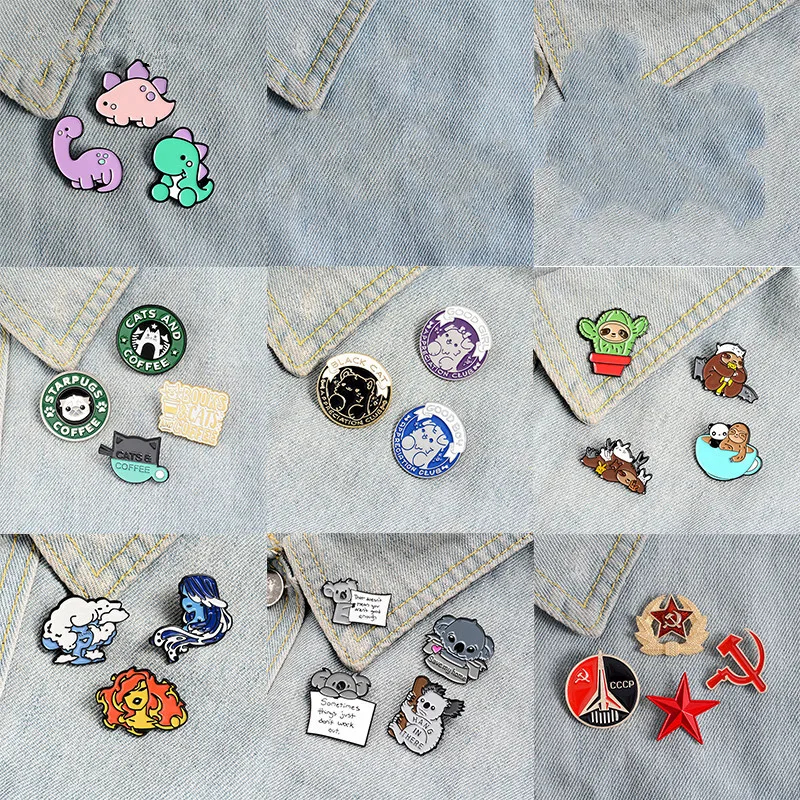3 4 шт.компл. милые эмалированные булавки в виде животных, детей, ...