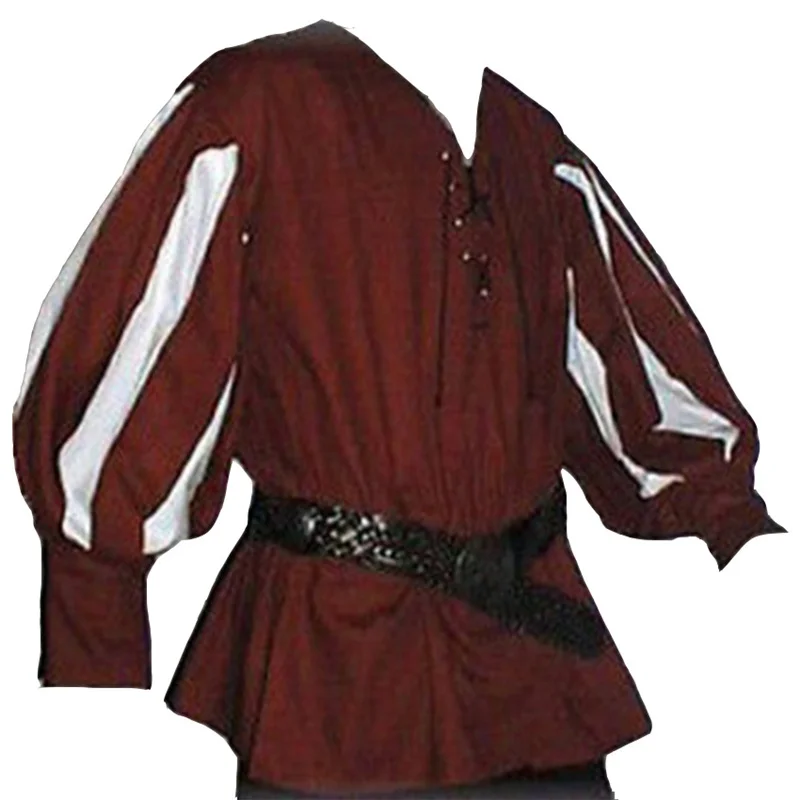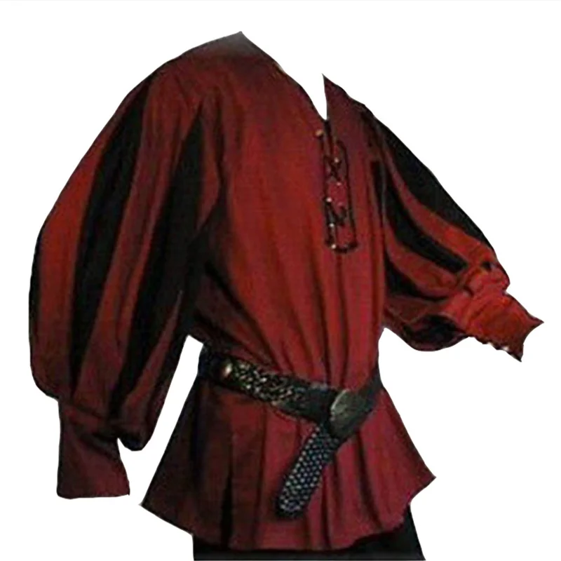 Новые мужские средневековый рыцарь-воин туника рубашка в ретро-стиле с поясом Ланскене для реалистичных игр косплей-костюм пирата на шнуровке верхняя часть одежды для Paladin плюс
