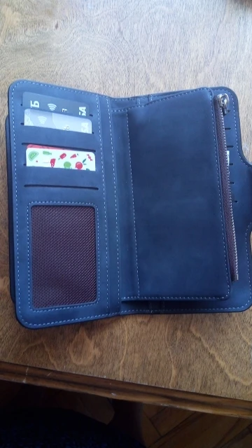 В корзине цвет стоял голубой, но пришёл синий. Но такой тоже сойдёт. Довольна общением с продавцом, и доставкой! Пришёл кампанией СДЭК, курьером, очень удобно. В кошельке много различных карманов, материал приятный. Таким подарком я довольна, спасибо!!