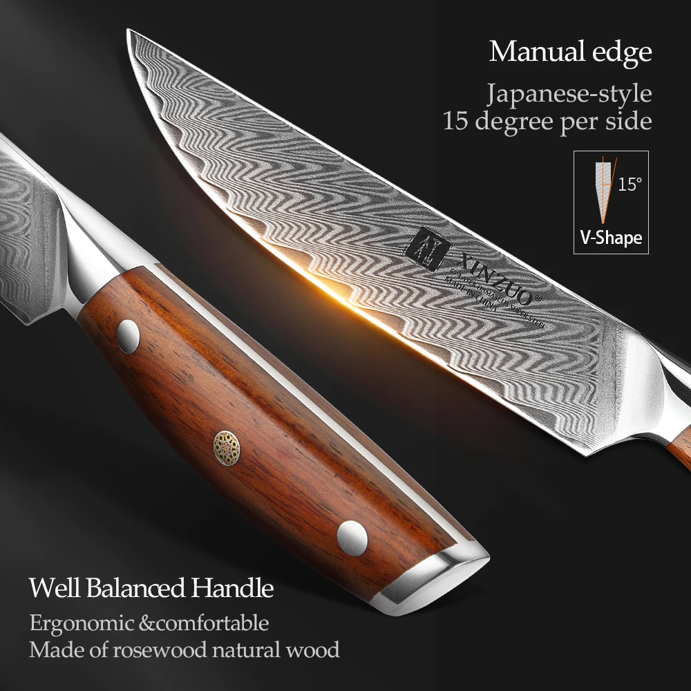 XINZUO 5-дюймовый универсальный нож из высокоуглеродистой дамасской...