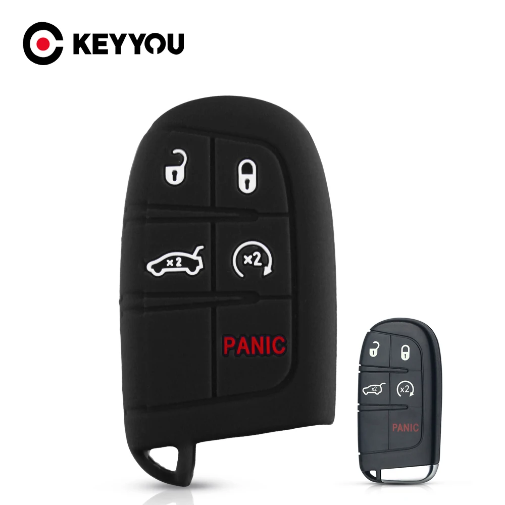 KEYYOU для JEEP Grand Cherokee и Renegade Dodge JCUV Дротика путешествие Chrysler 300C чехол дистанционного брелока 5 Кнопка Силиконовый чехол для ключей от машины