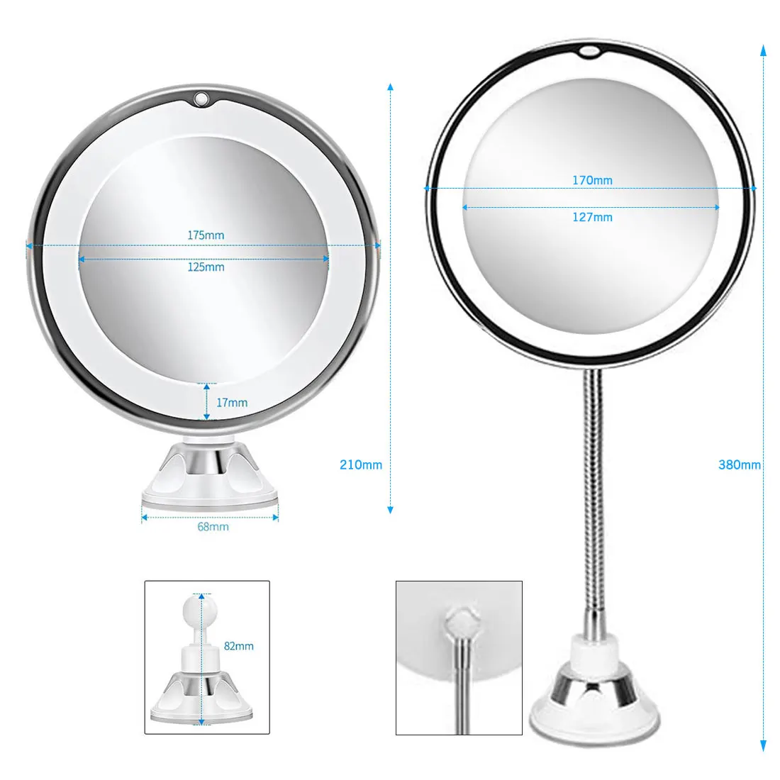 Светодиодный зеркало для макияжа 10X гибкого зеркала с светодиодный светильник зеркала заднего вида Портативный 10X увеличительное косметическое зеркало для макияжа дропшиппинг