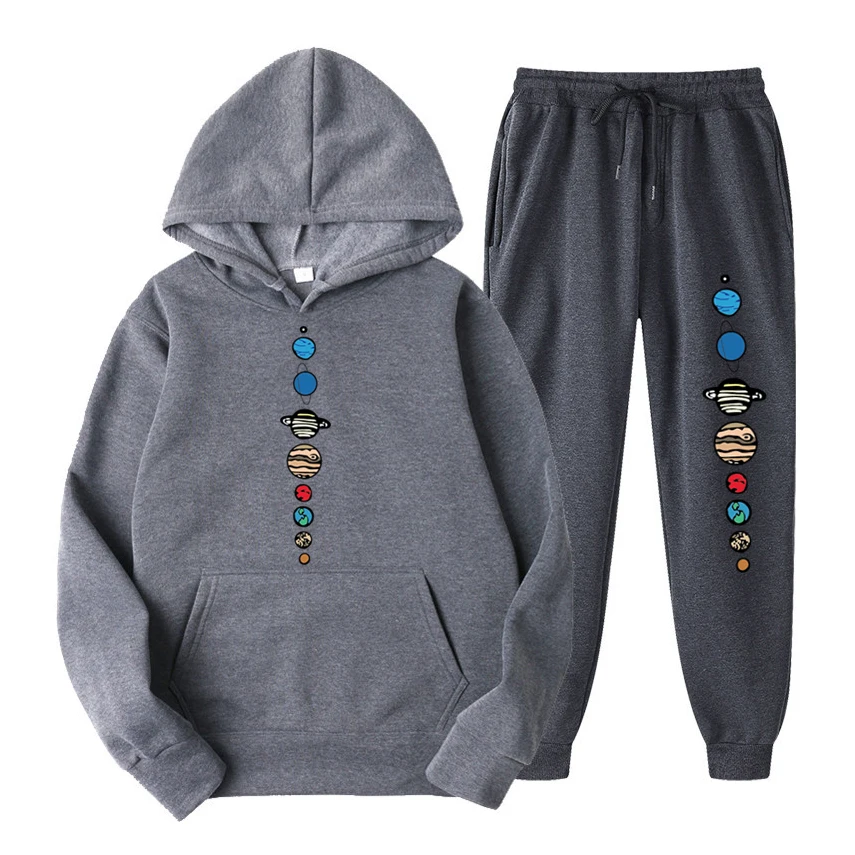 Мужской спортивный костюм, осенне-зимний пуловер с капюшоном и штаны