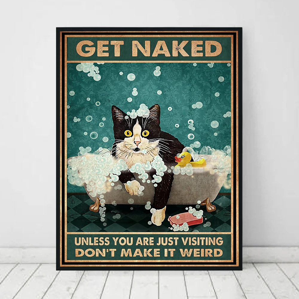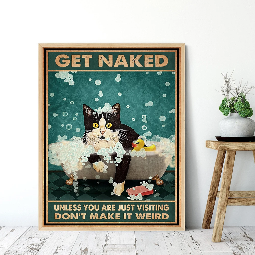 Металлический плакат с изображением черной кошки, не делайте это странным, Художественная печать, винтажный наряд, ретро, Забавный знак для ванной, Картина на холсте, домашний декор