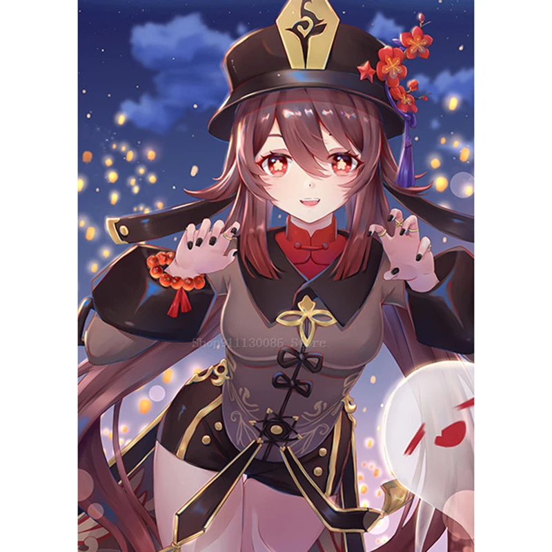 Алмазная 5D картина сделай сам с полным заполнением, игра Genshin Impact Hutao, Алмазная мозаика, мультяшная девушка, вышивка крестиком, домашний декор, подарок