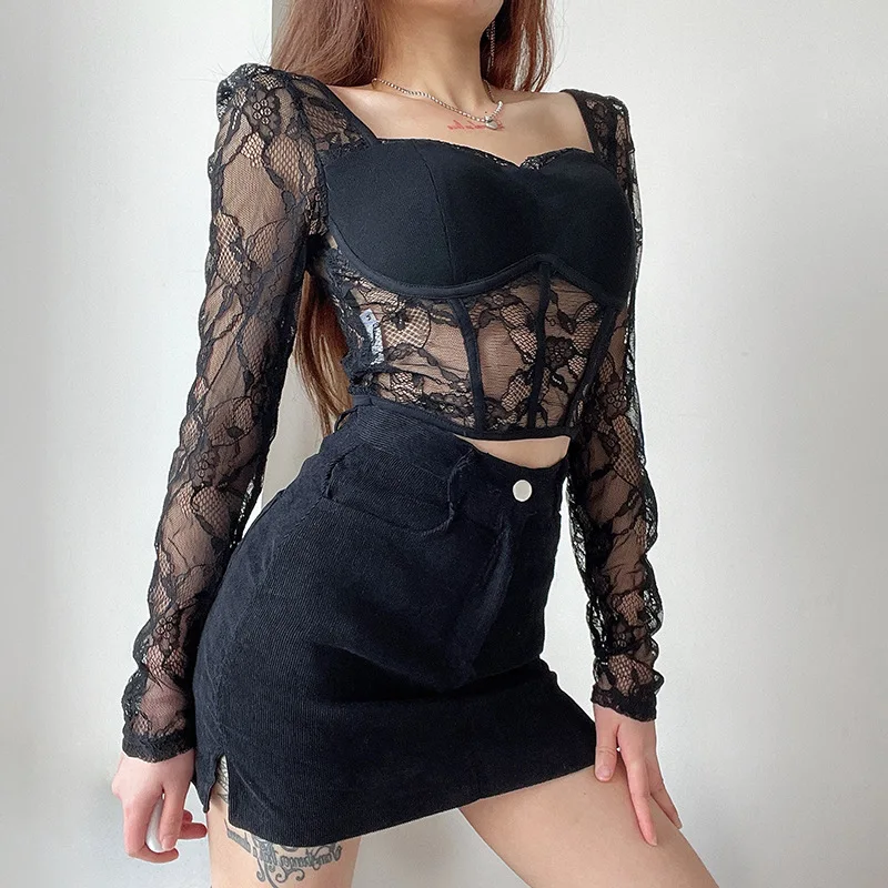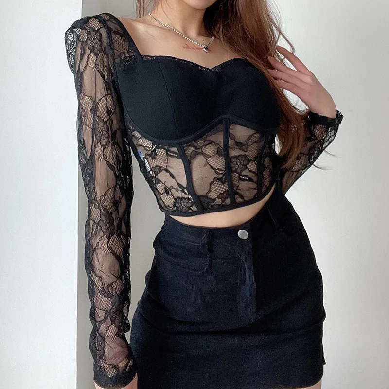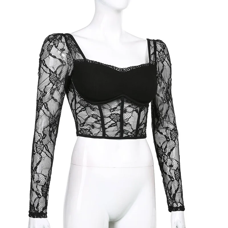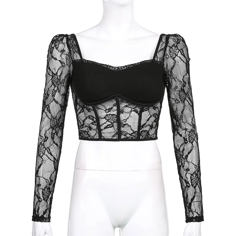 Топ женский сетчатый, с длинным рукавом, в готическом стиле