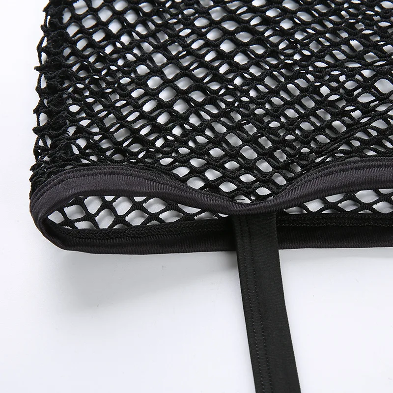 Женский сетчатый топ в стиле Харадзюку, Прозрачная Черная футболка