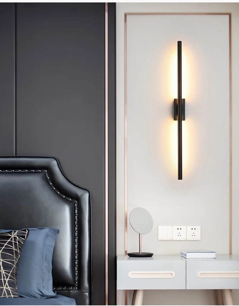 Современный простой линейная трубка светодиодный настенный светильник с крышкой вверхвниз фон напротив стены светильник светодиодный прикроватные бра в фойе черного и золотого цвета светодиодный бра