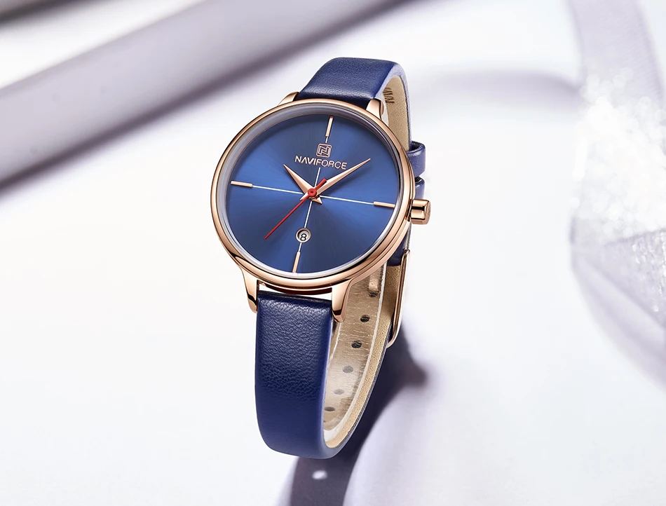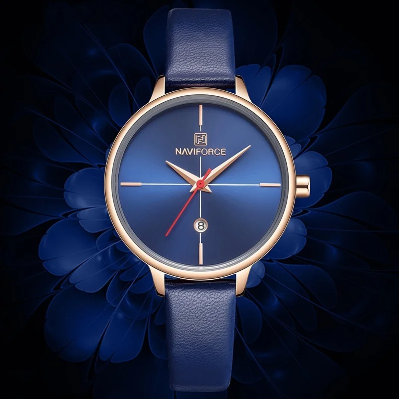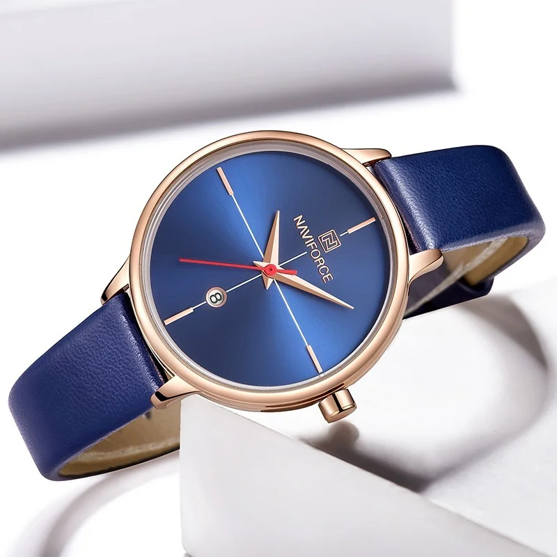 NAVIFORCE женские часы Модные Кварцевые женские синие ПУ ремешок дл...