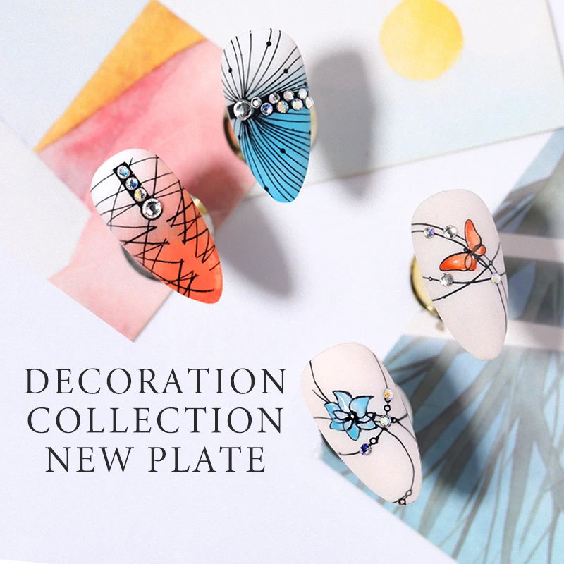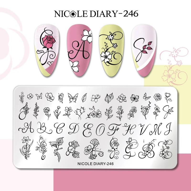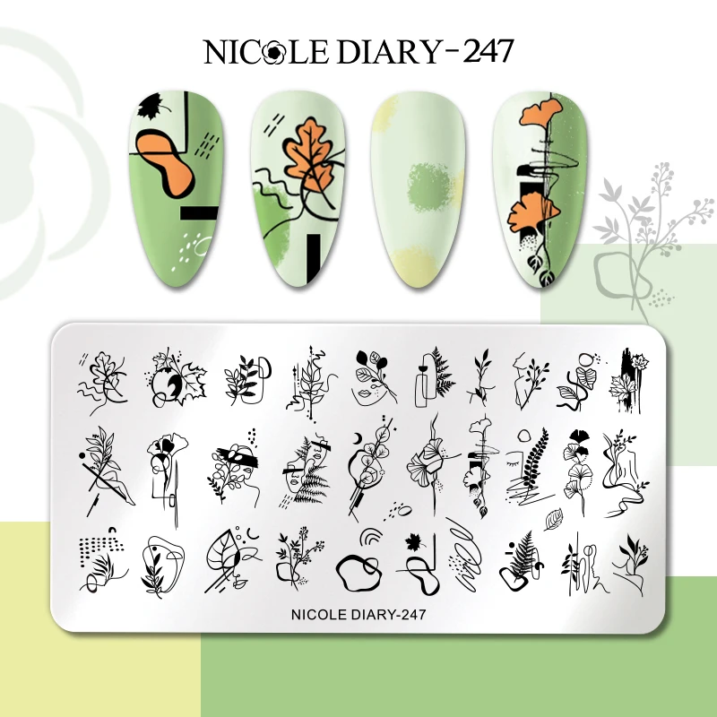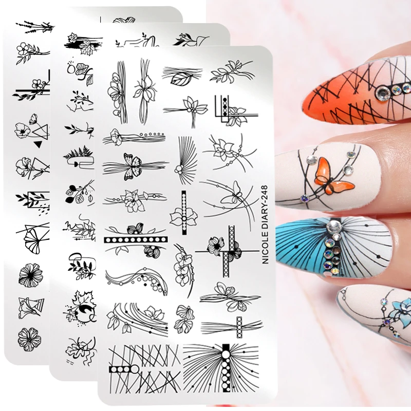 Трафарет NICOLE DIARY для стемпинга ногтей, пластина из нержавеющей стали для самостоятельной Печати, для создания рисунков, цветов, листьев, полосок